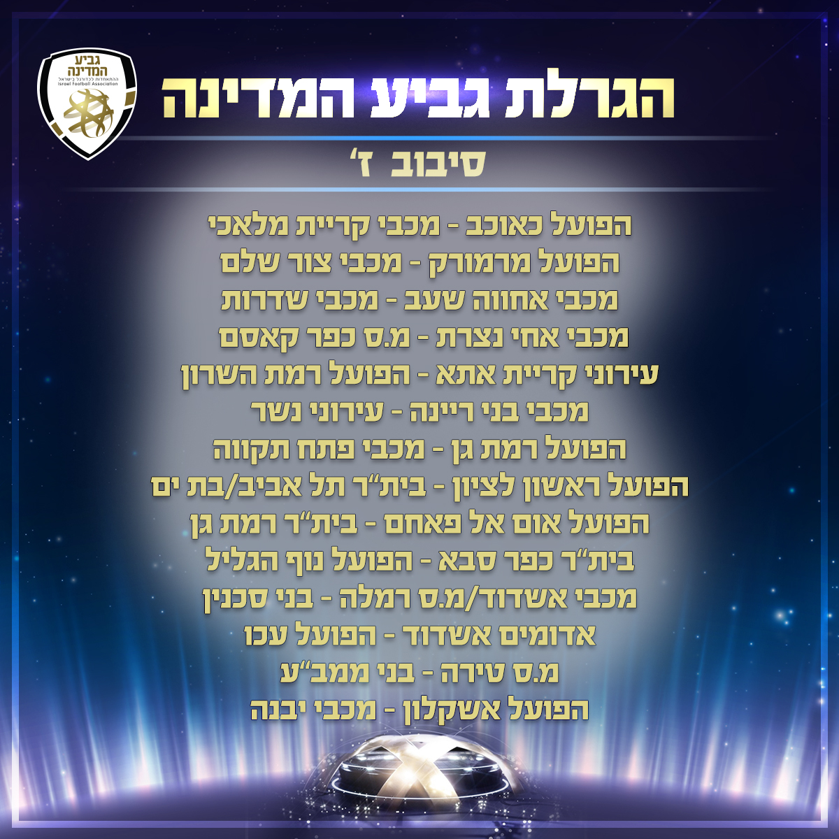 ההתאחדות לכדורגל בישראל תוצאות הגרלת סיבוב ז בגביע המדינה 2019 20